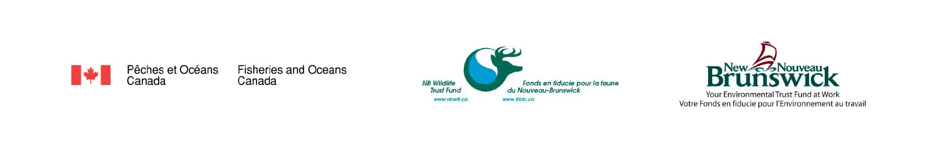 Rien de tout cela ne serait possible sans le soutien de nos bailleurs de fonds. Nous tenons donc à remercier chaleureusement le Programme d’intendance de l’habitat pour les espèces aquatiques en péril de Pêches et Océans Canada, le Fonds en fiducie pour l'environnement du Nouveau-Brunswick et le Fonds en fiducie pour la faune du Nouveau-Brunswick.
